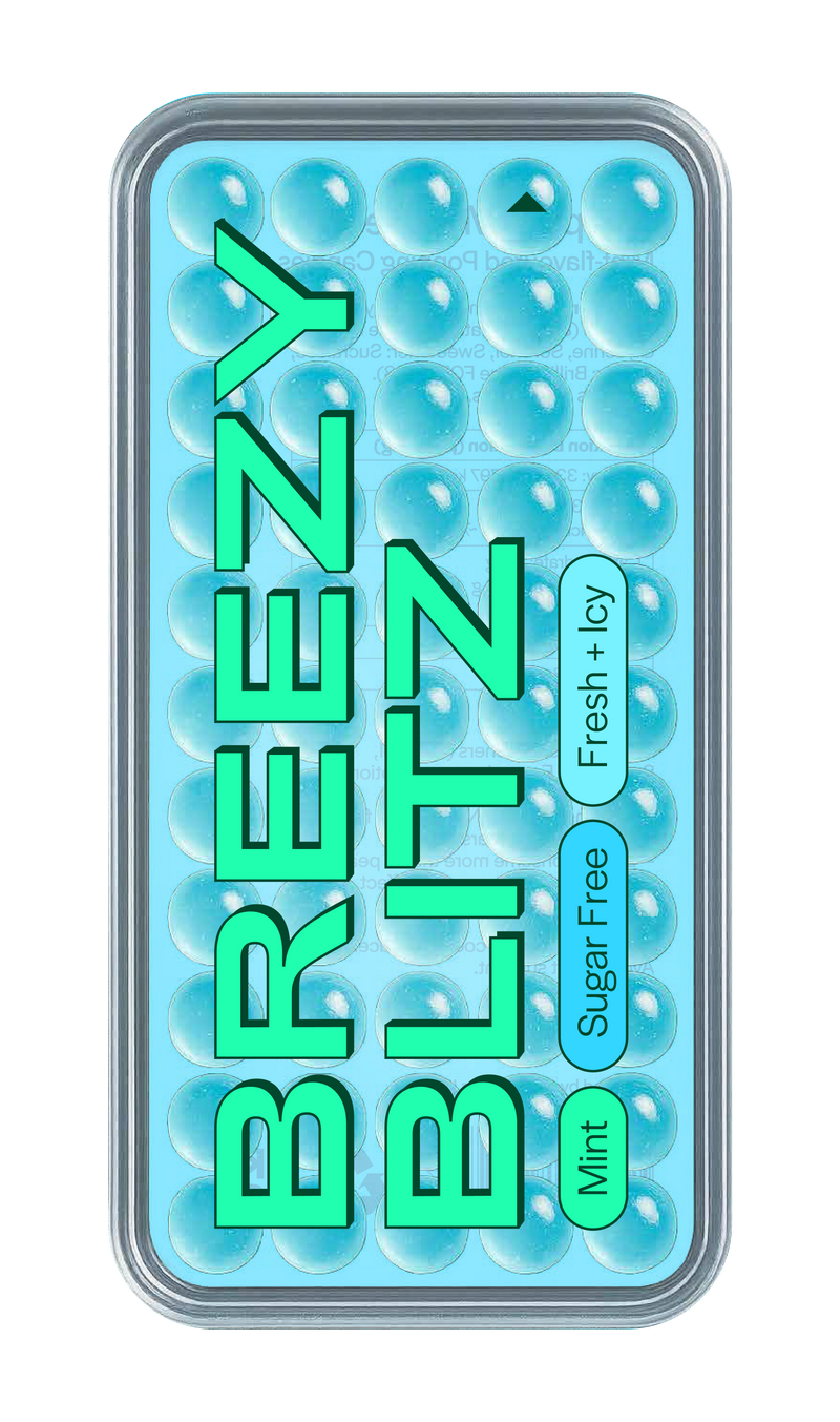 Breezy Blitz introduces ultra-small mint pearls that burst instantly on your tongue with an icy hit of freshness, then dissolve effortlessly. No chewing. No stickiness. No lingering mess. Just a quick pop, a cool rush, and you’re ready to go.